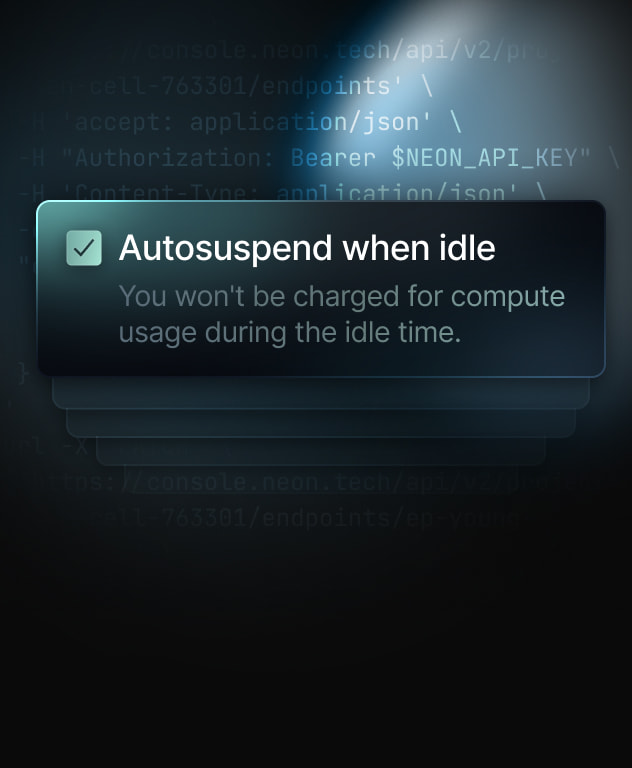 Powerful API. Use the Neon API to create databases, run migrations, and manage limits.